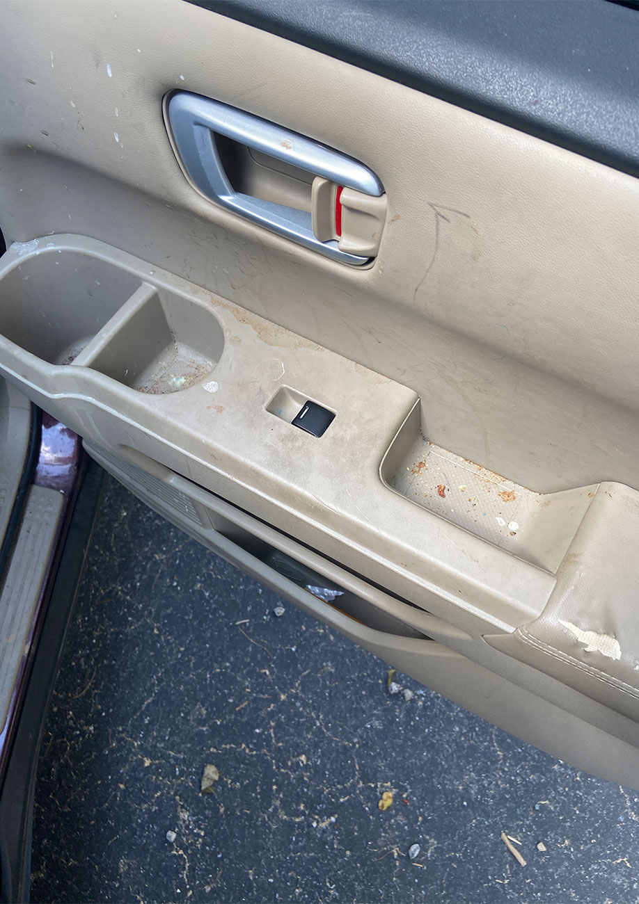 - Pressurized steam cleaning of door trim, pedals, cup holders, vents, and moulding