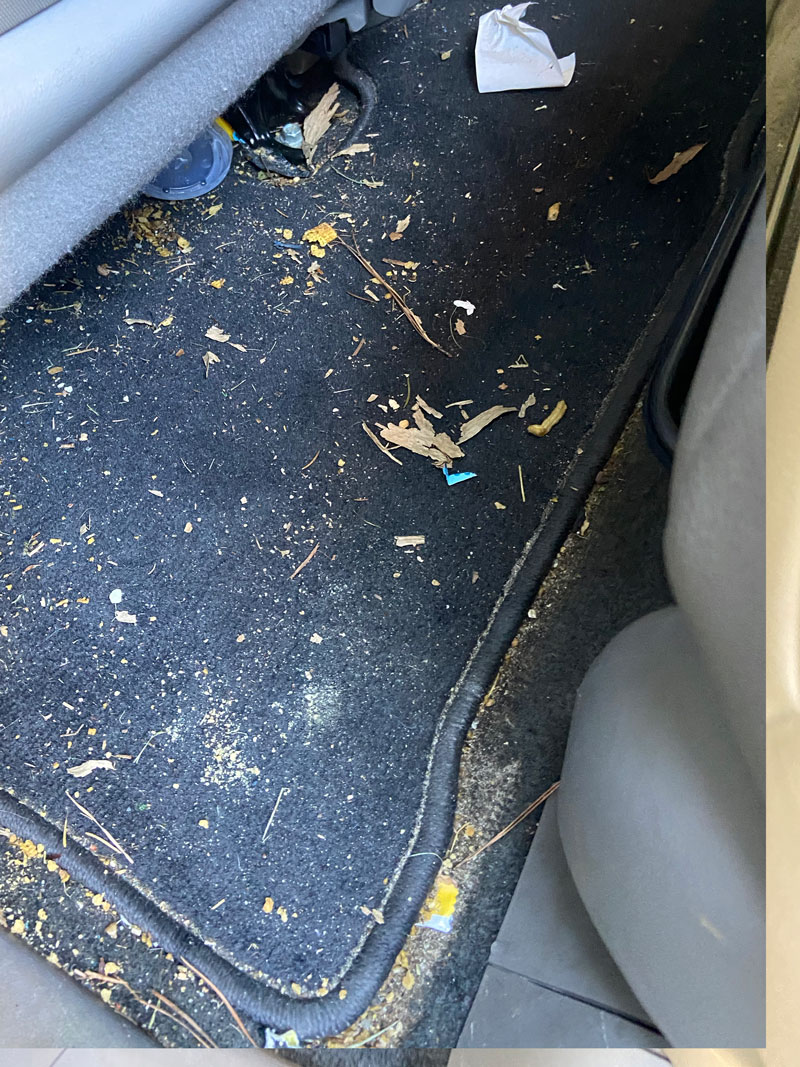- Vacuum floor, seats, trunk